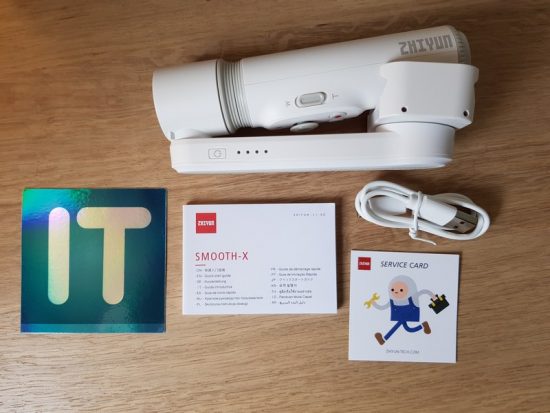 La boîte donne un bel aperçu du produit et de son design, beaucoup moins sur ses fonctionnalités, mais à l'intérieur tout est bien rangé et protégé. Nous retrouvons le Smooth-X, ainsi qu'une notice d'utilisation en plusieurs langues, dont le français, ainsi qu'un câble USB-C pour recharger l'appareil. Dans cette version standard, le trépied n'est pas intégré ; la housse de transport non plus.