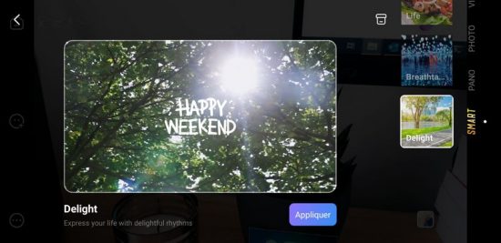 Il y a également quelques templates vidéos, pour créer des vidéos animées très simplement avec des mouvements automatiques de la perche pour créer des effets originaux sur de courtes séquences de 2-3 secondes. Dans la foulée, lorsque les petites séquences vidéos sont enregistrées, l'application génère un montage des vidéos afin de partager la création sur les réseaux sociaux.